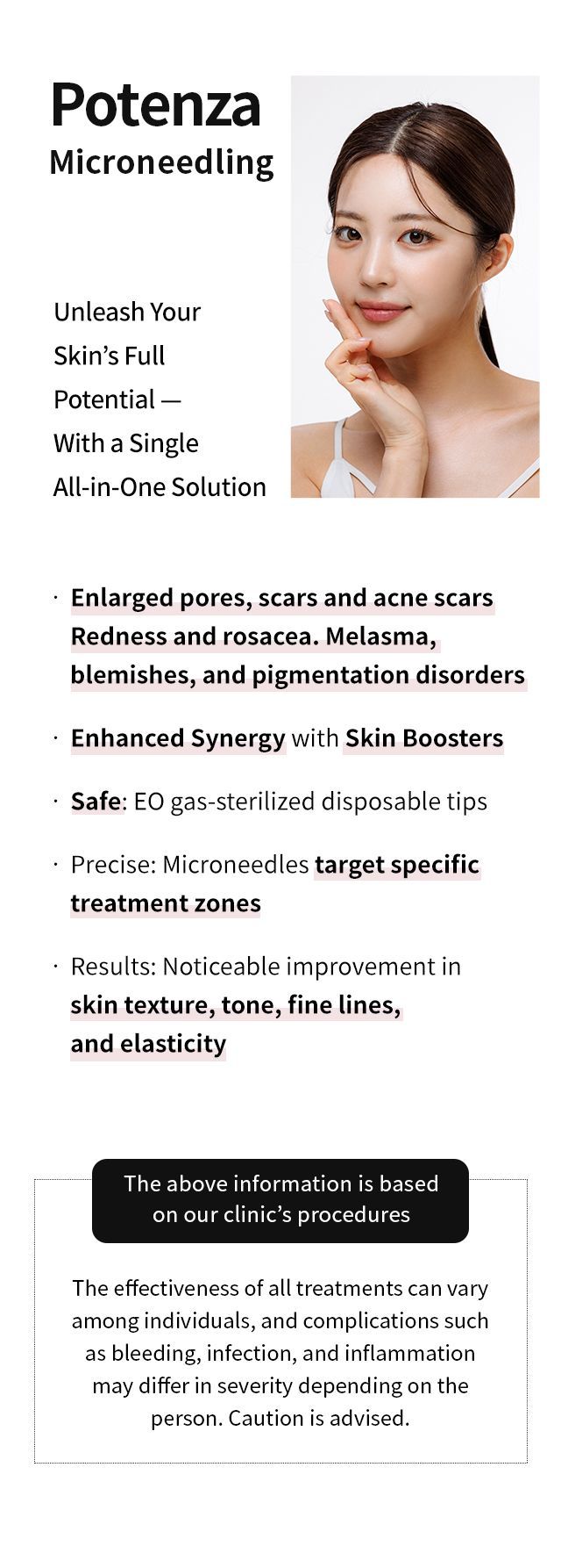 By combining ultra-fine microneedles with controlled RF energy delivery, Potenza Laser promotes skin renewal while maintaining a natural, healthy appearance.